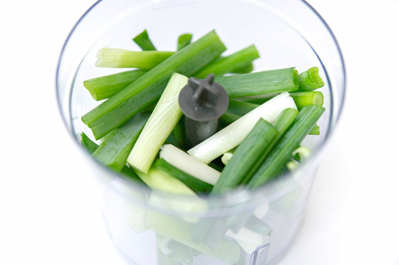 Для измельчения зеленого лука нам понадобилось 10 секунд на 15-й скорости.