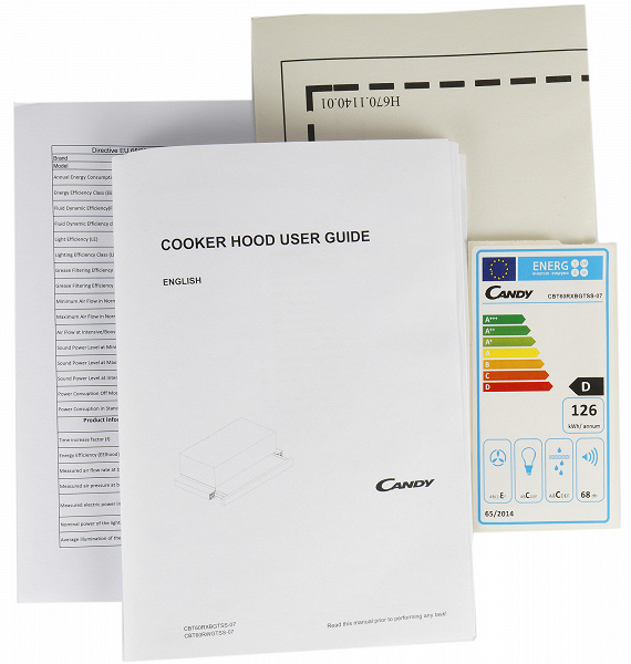 В комплект документации входят также бумажный шаблон для монтажа, отдельный листок с техническими характеристиками и стандартная наклейка с информацией об энергоэффективности.